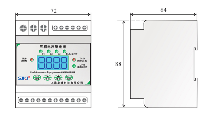1) 本繼電器采用專用芯片、集成電路為微機(jī)型繼電器,數(shù)碼管顯示監(jiān)測(cè)電壓。